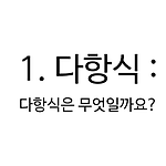 이번에는 다항식을 나타내는 방법에 대해서 알아보도록 하겠습니다. 다음에는 변수가 하나가 아닐 때 다항식을 어떻게 나타내는지에 대해서 알아보도록 하겠습니다.
